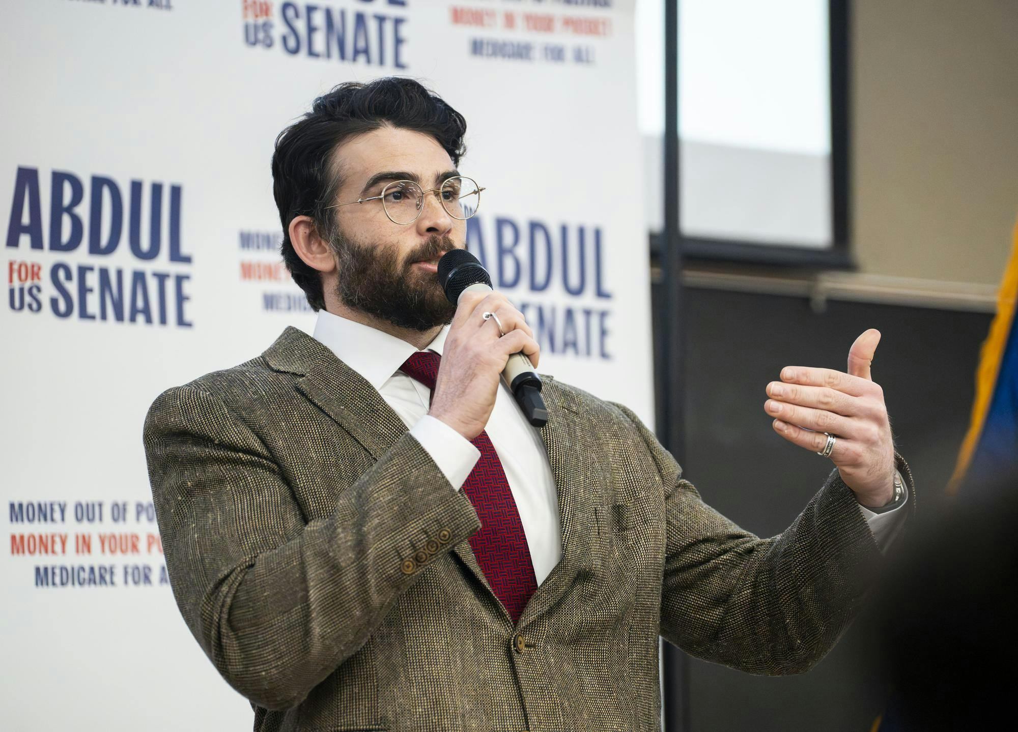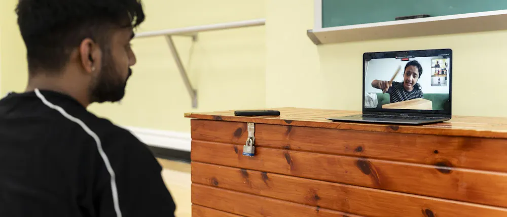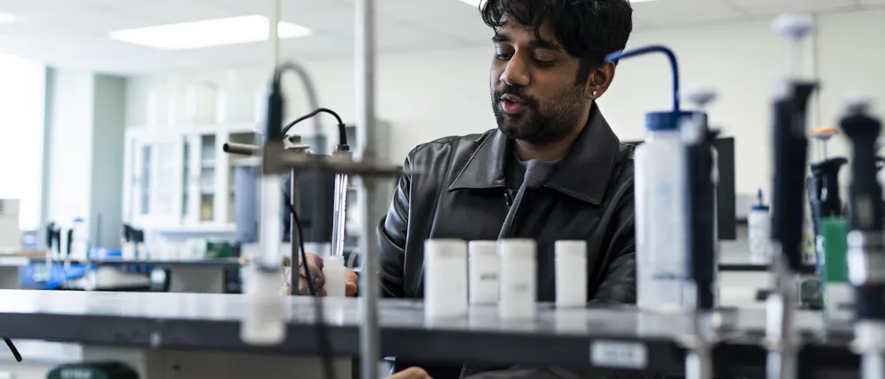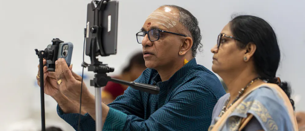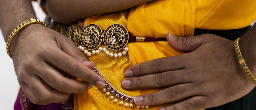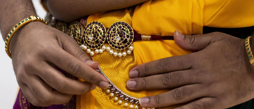 Biochemistry senior Abhinav Anand performs an original dance at the Sri Sharadamba Temple in Farmington Hills, Mich. on March 8, 2026. Anand dances in the south Indian Bharatanatyam style reacting ancient Hindu myths with modern-day contexts. As a man in a traditionally feminine art form, Anand finds his identity through his art and the support from his friends and family.