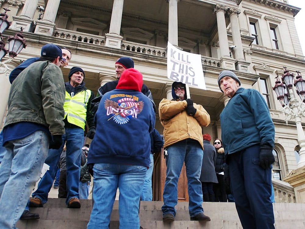 The Michigan Legislature barreled through a controversial right-to-work bill Thursday afternoon, forging ahead while hundreds of protesters gathered in opposition just a few feet from the legislators.