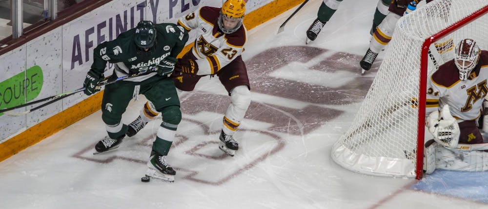 Minnesota forward Javon Moore scored the shootout-winning goal as the Gophers’ second shooter. Senior forward Daniel Russell was the only Spartan to convert in the shootout.